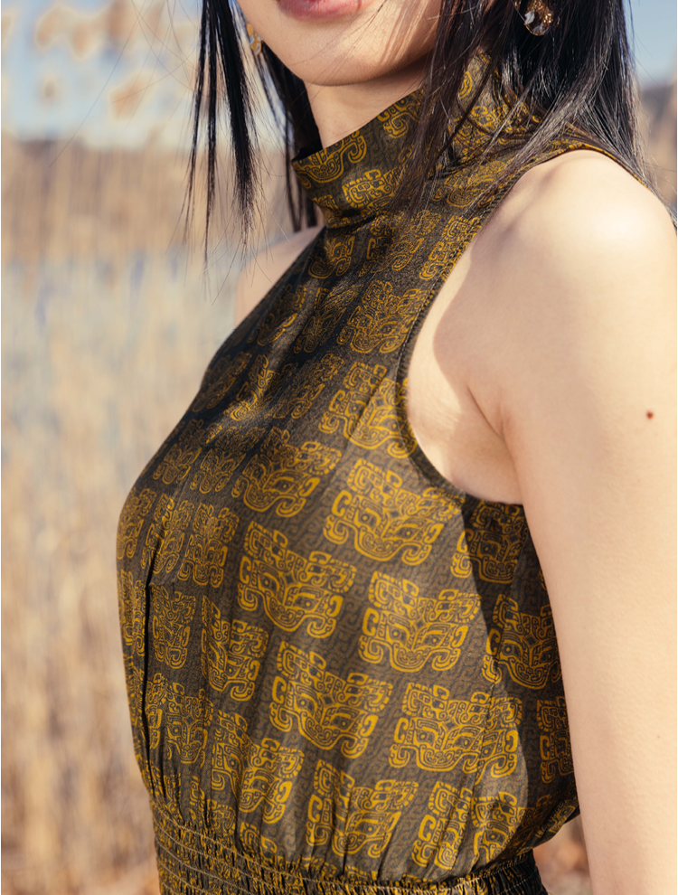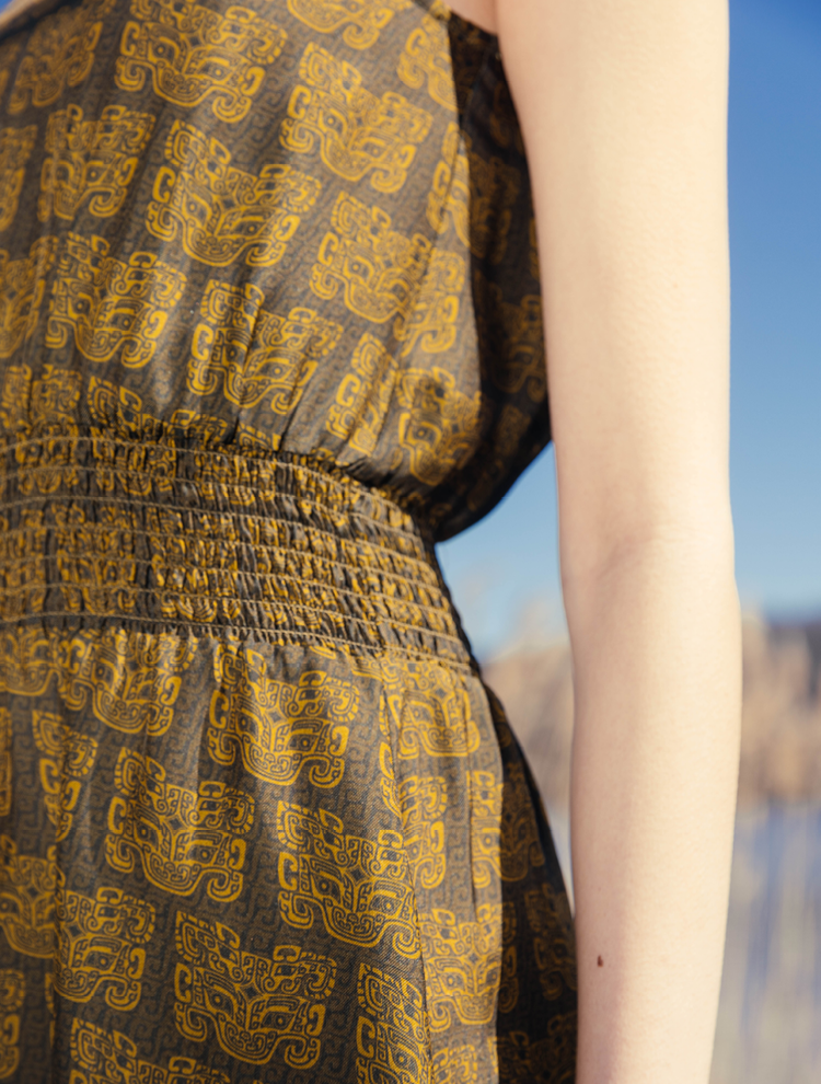 Silk twill dress featuring the Mask Print.